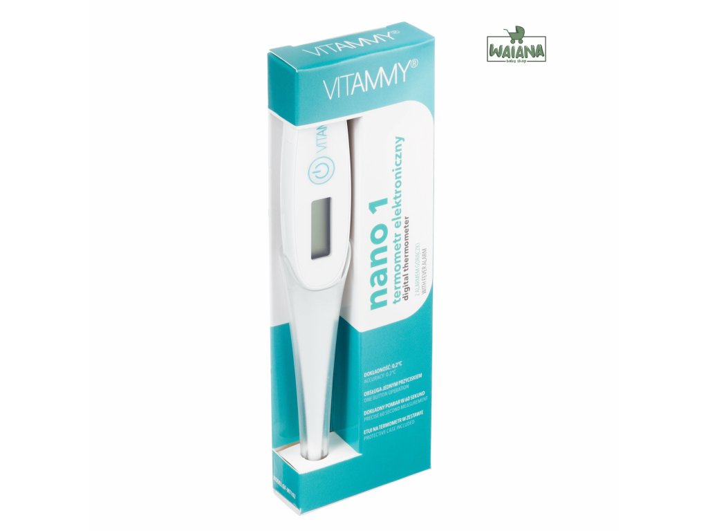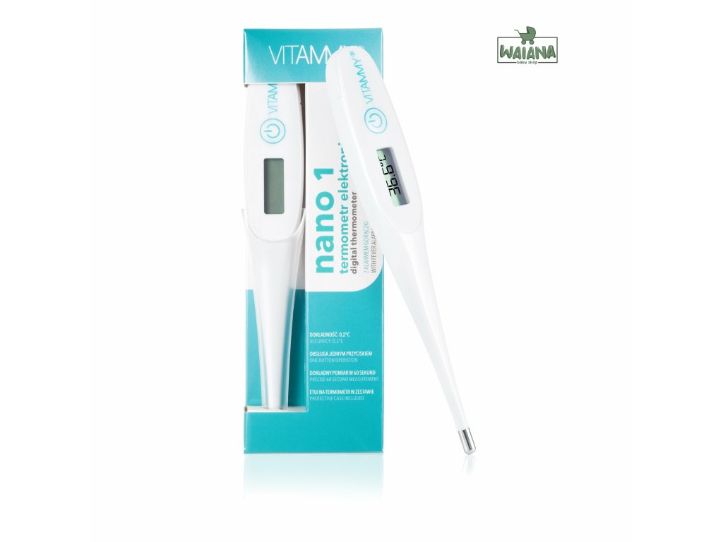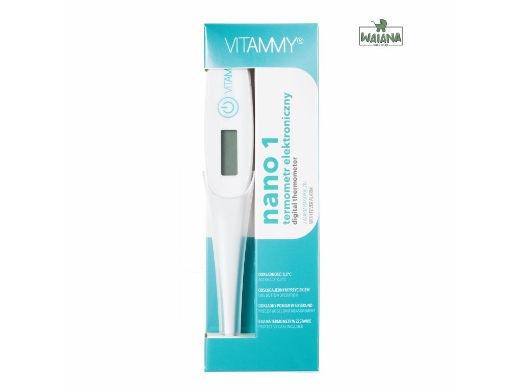 VITAMMY Nano 1 je obľúbenou voľbou mnohých domácností vďaka svojej jednoduchej obsluhe, vysokej presnosti (± 0,1 °C) a možnosti merania na troch rôznych miestach: v ústach, podpazuší a konečníku. Je vhodný pre všetky vekové kategórie, od novorodencov až po seniorov.