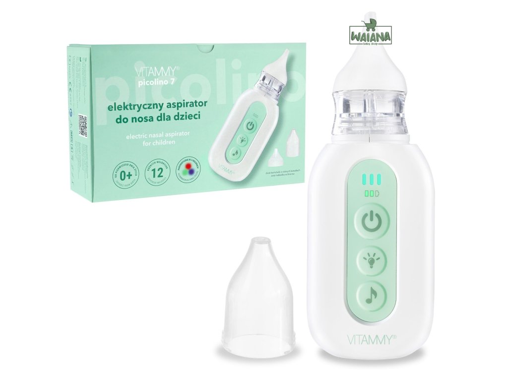 VITAMMY PICOLINO 7 Nosová elektrická odsávačka hlienov pre deti, 2 nástavce, 3 režimy