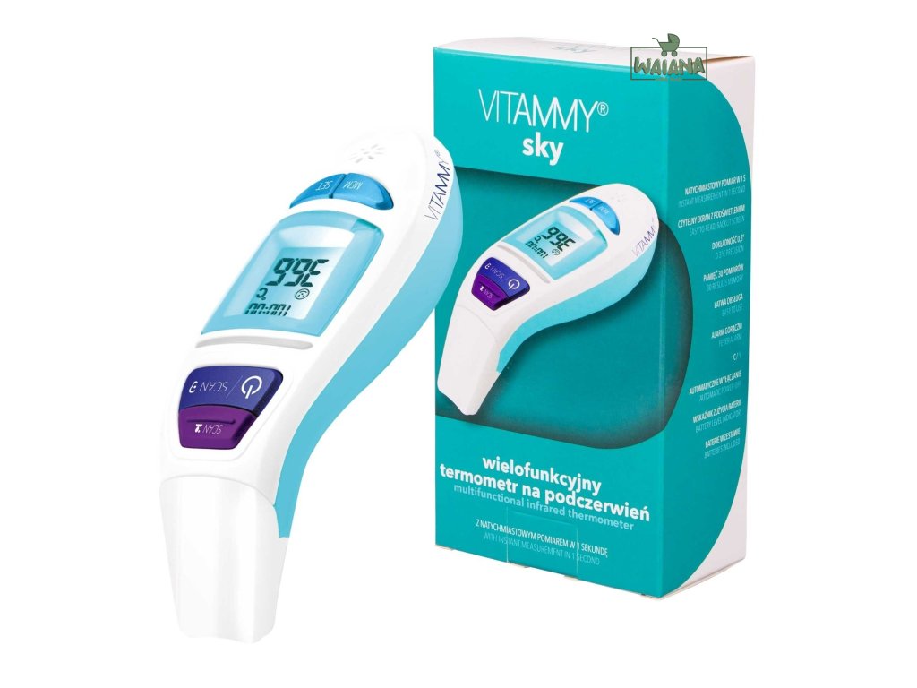 Multifunkčný teplomer VITAMMY SKY kombinuje bleskovú 1-sekundovú rýchlosť merania s vysokou presnosťou a všestrannosťou. Umožňuje jednoducho a hygienicky zmerať teplotu tela na čele, v uchu, ale aj teplotu nápojov a povrchov predmetov. Vďaka praktickým funkciám, ako je pamäť na 30 meraní a alarm horúčky, budete mať vždy dokonalý prehľad o zdravotnom stave vašej rodiny.