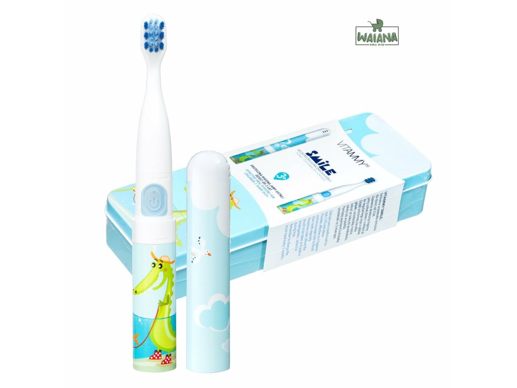 Dokonalá kefka pre detiSonická zubná kefka VITAMMY SMILE je dokonalá kefka pre deti, ktorej veselé farby a rozprávkové kresby budú vaše dieťa motivovať ku každodennej hygiene. Vďaka sonickej technológii sa zubná kefka postará o zdravý úsmev každého dieťaťa. Kefka, ktorá má dva režimy - normálny a jemný.VITAMMY SMILE má 2 režimy Frekvencia vibrácií: -normálny režim: 10 000 - 14 000 VPM,- jemný režim: 8000-12000 VPM. Ideálna aj pre dospelých.Je tiež ideálnym riešením pre dospelých, ktorí uprednostňujú menšie čistiace kefky. Sonická kefka VITAMMY SMILE vďaka kombinácii pulzácie sonickou technológiou s mäkkými vláknami zaisťuje vynikajúcu kvalitu čistenia a starostlivosť aj o najjemnejšie zúbky s ďasná.Technológia Sonic Pulsation.Technológia Sonic pulsation účinne odstraňuje zafarbenie, redukuje plak a oneskoruje tvorbu zubného kameňa. Pri pravidelnom používaní sa zuby stávajú zdravšími. Kefka vykonáva pohyby, ktoré pomáhajú dieťaťu čistiť zúbky samostatne. Kefka je určená pre deti od 3 rokov.Vodotesná a hygienická.Vodotesný plast, z ktorého je vyrobená sonická zubná kefka, je rýchloschnúci materiál, ktorý nie je porézny a preto je veľmi hygienický.Ideálna pre bezpečnú prepravu.Ďalšou výhodou je ochranný kryt, vďaka ktorému môže dieťa hygienicky zabaliť zubnú kefku do batohu a vziať si ju do škôlky alebo školy. Sonická kefka je ľahká a jej rozmery a ochranný kryt umožňujú ľahkú a bezpečnú prepravu. Kovové puzdro.Súčasťou zubnej kefky je aj kovový obal / krabička s veselým rozprávkovým vzorom, ktorý vám umožní kefku uložiť do púzdra spolu s pastou. Napájaná batériami.Kefka je napájaná batériami, ktoré môžete veľmi jednoducho vymeniť kdekoľvek sa nachádzate. Ideálna do malých rúk.Konštrukcia kefky umožňuje jej jednoduché a ľahké zapnutie aj pre malé 3-ročné ruky. Toto nie je jednorazová zubná kefka. Štandardné vybavenie zubných kefiek Vitammy SMILE sú dve mäkké, nedráždivé násady na čistenie zúbkov. Inteligentné hodinky SMART WATCH .Prvé kalendárové hodinky pre vaše dieťa na kontrolu času a aktuálneho dátumu. Hodinky sú v priateľskom zvieracom tvare, vďaka čomu učia aj zabávajú.Ako funguje VITAMMY SMILE WATCH?Stačí stlačiť STAR, aby ste prebudili obrazovku a skontrolovali čas.Keď stlačíte tlačítko znova, zobrazí sa deň a mesiac a keď sa znova dotknete Hviezdičky, zobrazí sa aktuálny rok.Deti sa učia čítať čas a poznať aktuálny deň a mesiac.Hodinky sú dostupné v dvoch farebných prevedeniach: modrej a ružovej. Majú vyberateľnú batériu.Obsah balenia: -1 x sonickú kefku VITAMMY SMILE-2 x násady na kefku VITAMMY SMILE; -1 x AAA batéria; -1 x ochranný kryt na kefku; -1 x kovové púzdro na kefku a pastu; -1x hodinkyZáruka: 2 roky.