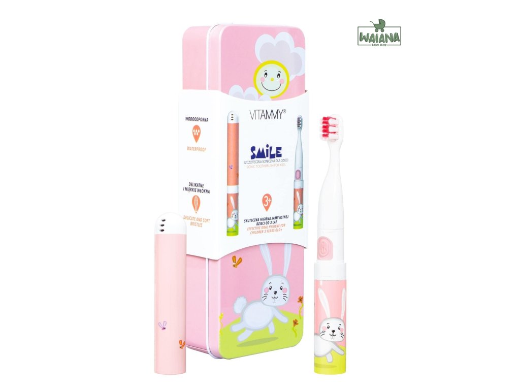 Vitammy Smile je sonická zubná kefka vytvorená s ohľadom na tých najmenších, ktorá kombinuje moderné technológie s rozprávkovým dizajnom. Vďaka sonickej pulzácii 8-14 tisíc pohybov za minútu účinne odstraňuje zubný povlak a stará sa o zdravie ďasien a zároveň podporuje deti v učení sa čistiť si zuby. Ľahký, ergonomický dizajn a mäkké vlákna umožňujú bezpečné a pohodlné používanie od 3 rokov. Vodotesné puzdro, praktický ochranný kryt a kovové puzdro pomáhajú udržiavať hygienu a ukladajú všetko príslušenstvo na jednom mieste. Farebné dizajny od Marty Bileckej z nej robia nielen funkčnú pomôcku, ale aj obľúbenú vychytávku pre deti.