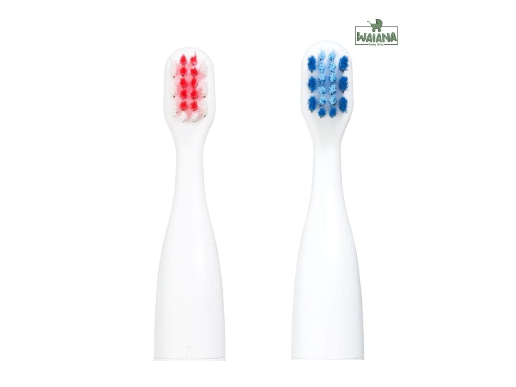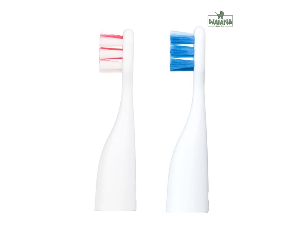 Praktické balenie s dvoma farebnými násadami: Balenie obsahuje dve náhradné násady v rôznych farbách (modrá a ružová). To je praktické pre rozlíšenie, ak má viac detí jednu zubnú kefku, alebo pre jednoduchú obmenu. Mať k dispozícii náhradné násady zaisťuje, že budete mať vždy čistú a pripravenú kefku pre efektívne čistenie zubov vášho dieťaťa.