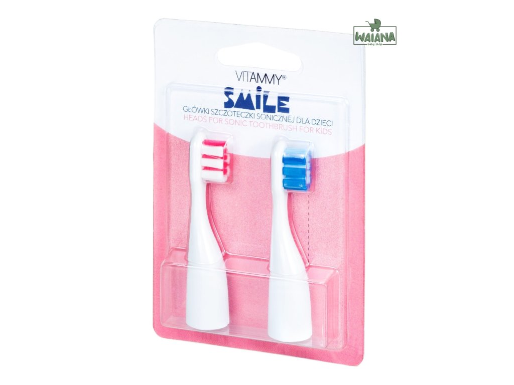 Náhradné násady špeciálne pre Vitammy Smile:Tieto vymeniteľné násady na zubnú kefku sú špeciálne určené pre detskú sonickú zubnú kefku Vitammy Smile. Ich tvar a uchytenie sú plne kompatibilné s touto kefkou, čím zaručujú jednoduchú výmenu a optimálnu funkčnosť. Používaním originálnych náhradných násad Vitammy Smile zabezpečíte efektívne a bezpečné čistenie zubov vášho dieťaťa.