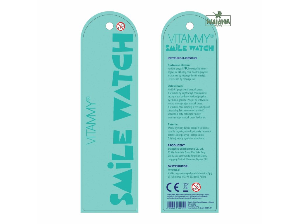 VITAMMY SMILE WATCH Detské silikónové hodinky, tyrkysová