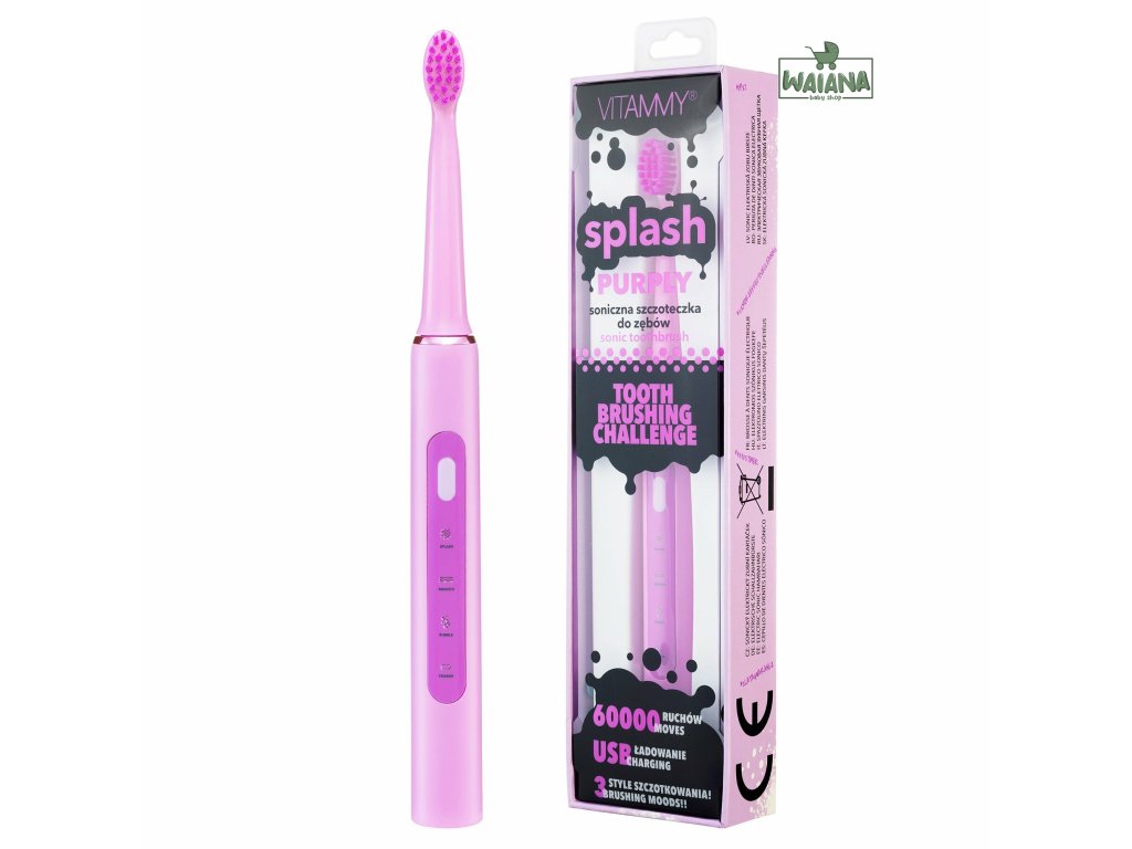 VITAMMY SPLASH, Detská sonická zubná kefka, 8r+, fialová/purple/