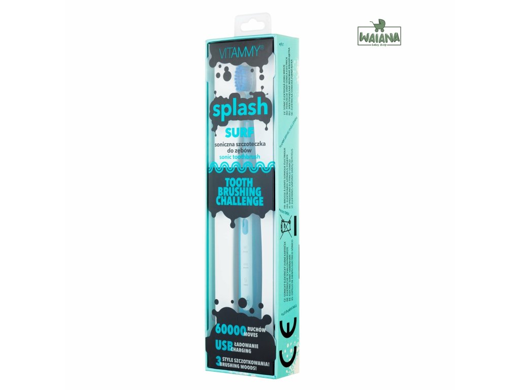 Prispôsobte štýl čistenia sebe a svojej nálade. Vybetre si jeden z troch programov a postarajte sa o svoje zdravie.SPLASH - denná dávka sviežosti.Výboj energie, ktorý odstraňuje zubný povlak a všetky nečistoty. Vaše zuby budú belšie, keď sa pustíte do výzvy sonického čistenia. Dokonalý štýl na ráno. SMOOTH – užite si jemnosť. Jemné vibrácie, ktoré čistia a upokojujú. BUBBLE - šumivý masážny efekt. Čistí zuby a masíruje ďasná. VITAMMY Splash 60 000 pohybov za minútu. -odstraňuje bakteriálny povlak -pomáha pri bielení zubov -zabraňuje vzniku zubného kazu -osviežuje dych Na jedno nabitie funguje 15 dní! Na nabíjanie kefky používate nabíjačku, takže sa staráte o životné prostredie a nekupujete škodlivé batérie. Vyberte si z 5 krásnych farieb.-YELLO -MINTY -SURF-PURPLY-PINK Zmena režimu jedným dotykom! Aktiváciou kefky môžete jedným tlačidlom zmeniť režim jej činnosti. VITAMMY Splash si zapamätá posledný režim umývania a ten sa spustí pri ďalšom čistení zubov. Zariadenie sa každých 30 sekúnd nakrátko zastaví, čo znamená, že je čas presunúť sa do inej oblasti úst. Tvarovaná hlava uľahčuje prístup k zadným zubom, zaručuje efektívnejšie čistenie ťažko dostupných miest a medzizubných medzier. Sada obsahuje. -1 rukoväť - kefka v jednej z vybraných farieb; -1 hlava kefky VITAMMY Splash; -1 USB napájací kábel -návod na použitie; Záruka na kefku je 2-ročná.