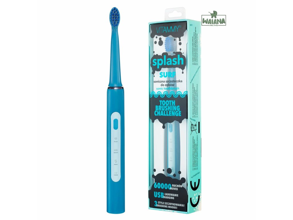 VITAMMY SPLASH, Detská sonická zubná kefka, 8r+, modrá/surf/
