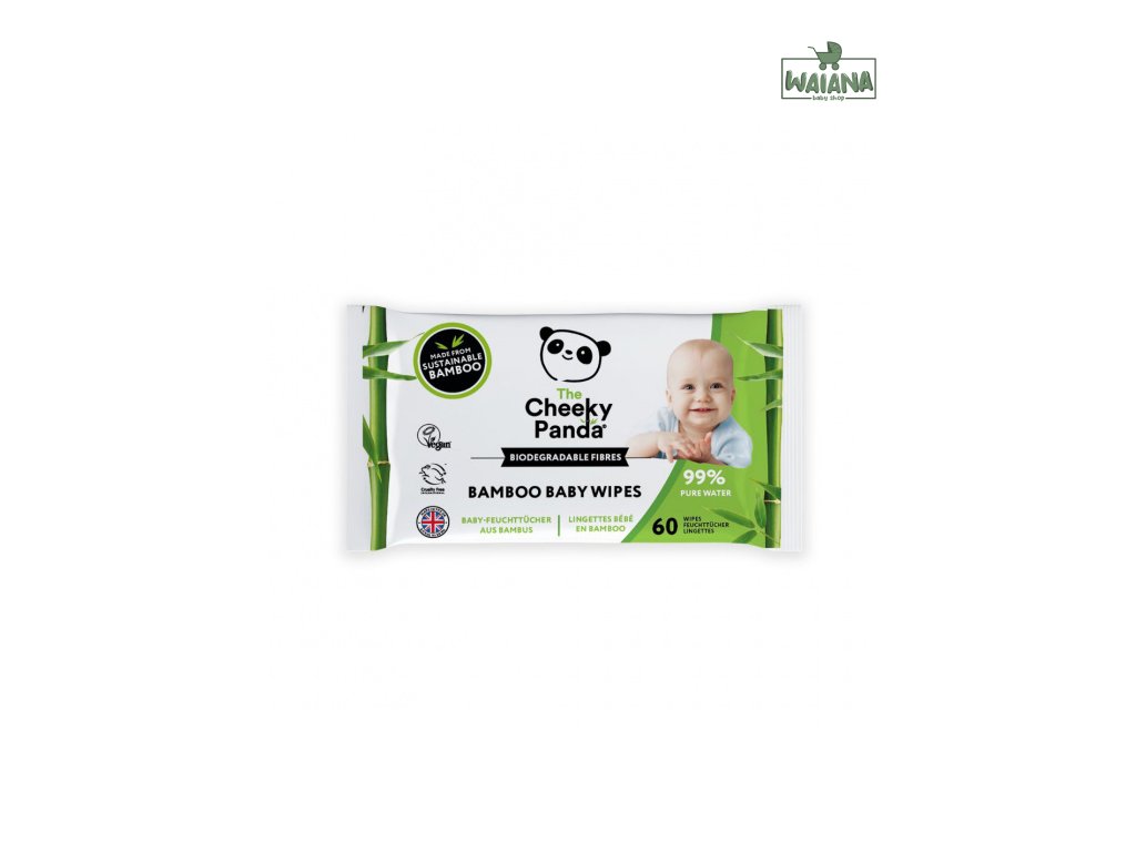 Vlhčené obrúsky Cheeky Panda sú jediné utierky dostupné na trhu, vyrobené výhradne z bambusového vlákna. Vďaka tomu sú biologicky odbúrateľné a majú prirodzené antibakteriálne a hydratačné vlastnosti .