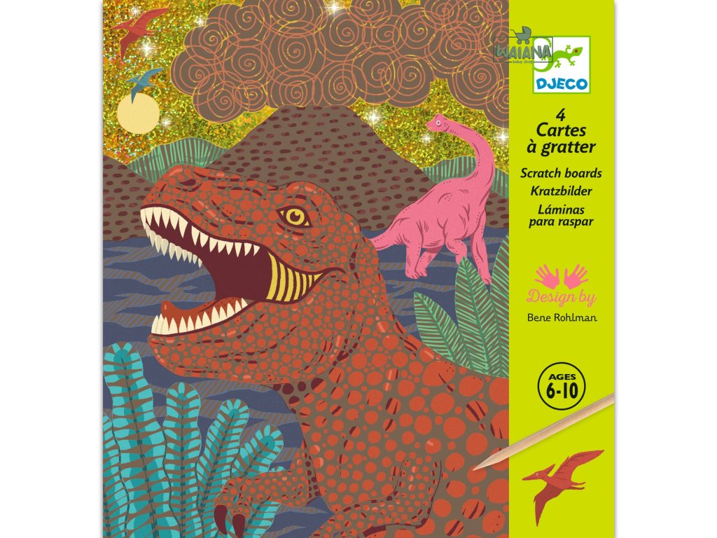 Vyškrabovacie obrázky: Doba dinosaurovKreatívna sada s dinosaurami na vyškrabovanieVyškrabovacie obrázky – Doba dinosaurov je zábavná kreatívna sada pre deti, v ktorej sa pomocou nástroja vyškrabávajú farebné obrázky dinosaurov a pravekých scenérií z čiernej vrstvy.Prečo si vybrať sadu od Djecovhodné pre deti od 6 rokovtematika obľúbených dinosaurovjednoduché vyškrabovanie vhodné pre malé rukyrozvíja kreativitu a jemnú motorikuvýsledok je farebný a atraktívnyideálne na doma, do školy aj na cestyObsah balenia4 vyškrabovacie kartičky s dinosaurnými motívmidrevený vyškrabovací nástrojobrázkový návod