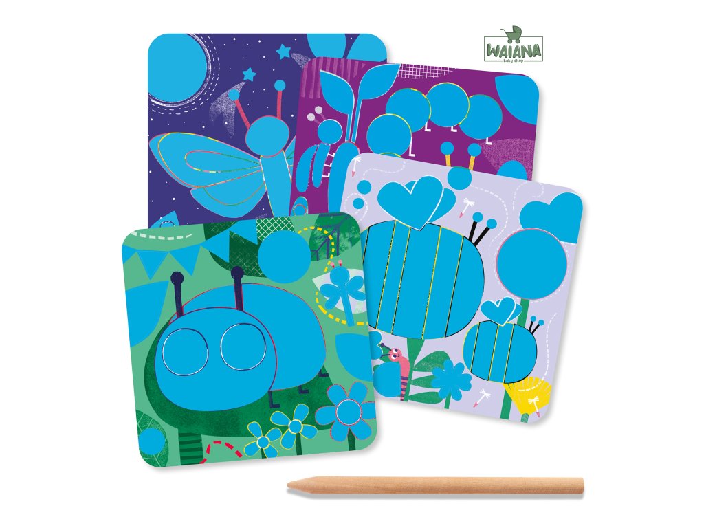 Vyškrabovacie obrázky Roztomilý hmyz Objav farby pod modrou vrstvou: vyškrabuj vzory, línie aj prekvapenia na roztomilom hmyzeVyškrabovacie obrázky Roztomilý hmyz sú kreatívna aktivita, pri ktorej deti zdobia obrázky jemným vyškrabovaním.Na kartách je modrá vrstva a pod ňou sa skrývajú pestré farby – stačí použiť drevenú škrabku so zaobleným hrotom a vytvárať bodky, čiary, ornamenty alebo odhaliť väčšie plochy.Výsledok vyzerá krásne aj vtedy, keď sa dieťa nechá uniesť a vyškrabe viac – obrázky budú stále pôsobiť dekoratívne.Rýchly prehľad odporúčaný vek: od 3 rokov rozvíja: jemnú motoriku, koordináciu oko–ruka, trpezlivosť, kreativitu v balení: 4 vyškrabovacie obrázky, drevená škrabka so zaobleným hrotom, obrázkový návodPrečo si ju deti zamilujú okamžitý „wow“ efekt – farby sa objavujú hneď pri pohybe škrabky dieťa tvorí vlastné vzory a každý obrázok bude unikátny zaoblený hrot je vhodný aj pre menšie ruky hotové kartičky vyzerajú krásne ako dekoráciaAko sa s tým hrá Vyber obrázok a polož ho na pevný podklad. Škrabkou vytváraj jemné línie, bodky alebo ornamenty. Podľa návodu môžeš pridávať vzory po častiach alebo odhaliť väčšie plochy. Hotový obrázok nechaj vyniknúť – môžeš ho vystaviť alebo darovať.Obsah balenia 4× vyškrabovací obrázok 1× drevená škrabka so zaobleným hrotom 1× obrázkový návodTechnické parametre materiál: kartón / papier, drevo počet obrázkov: 4 rozmery obrázkov: cca 20 × 20 cm rozmery balenia: cca 22 × 23 cm