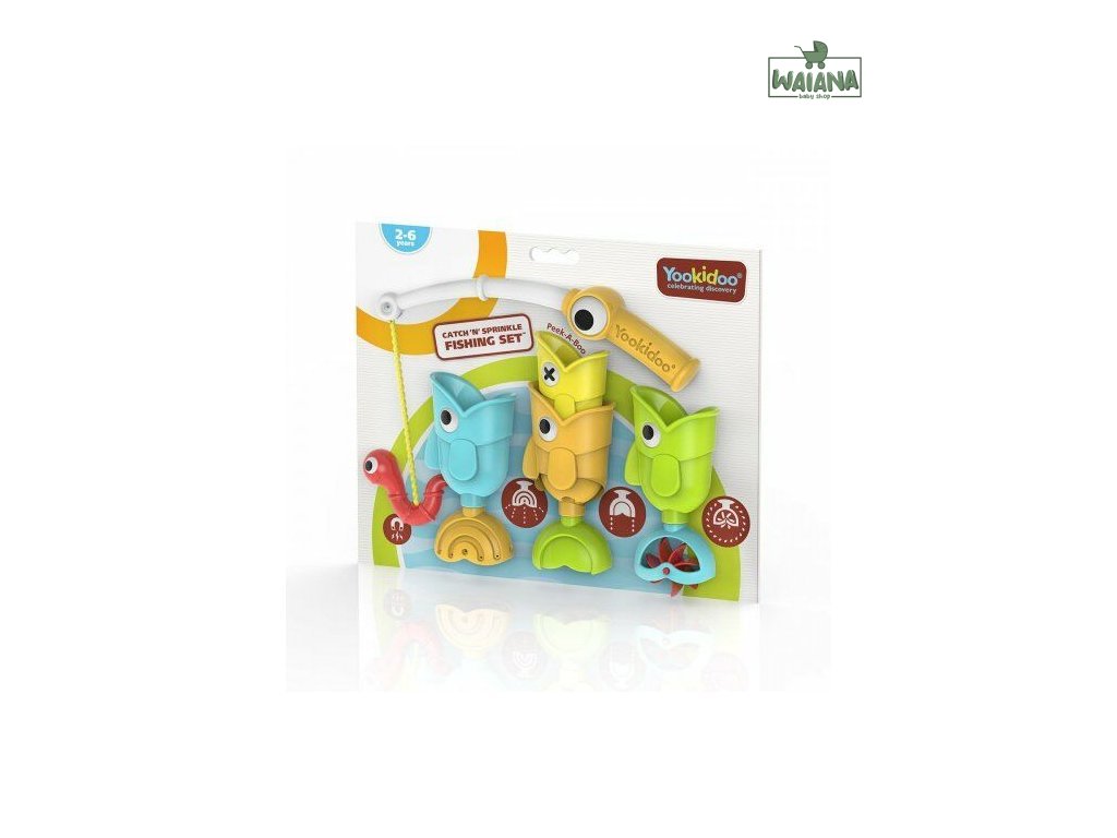 Rybárska súprava vytvára dynamickú scénu, ktorá nabáda k interakcii. Spýtajte sa svojho dieťaťa: „Akú farbu rybičky chceš teraz chytiť?"
