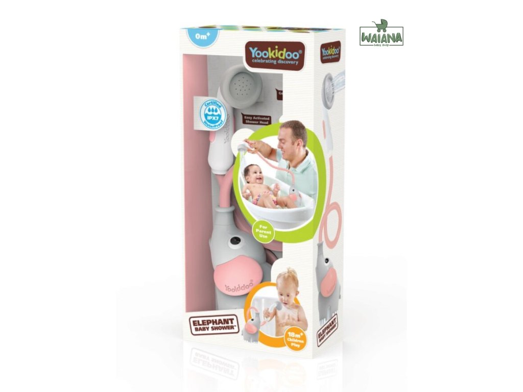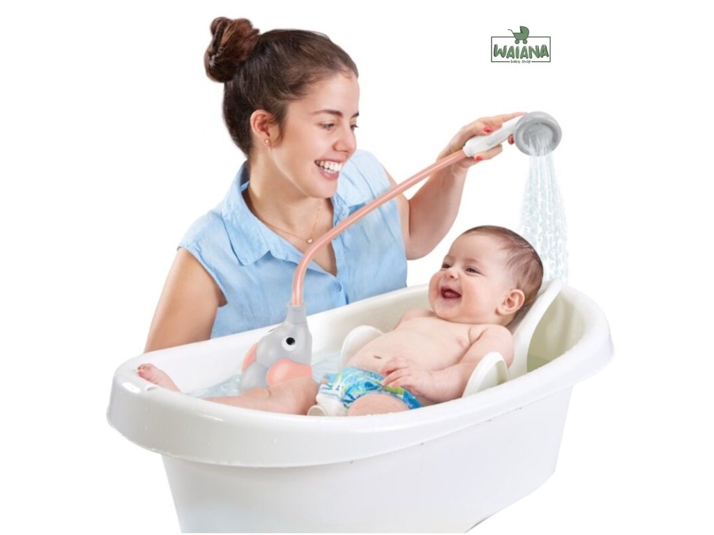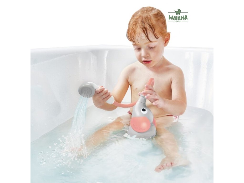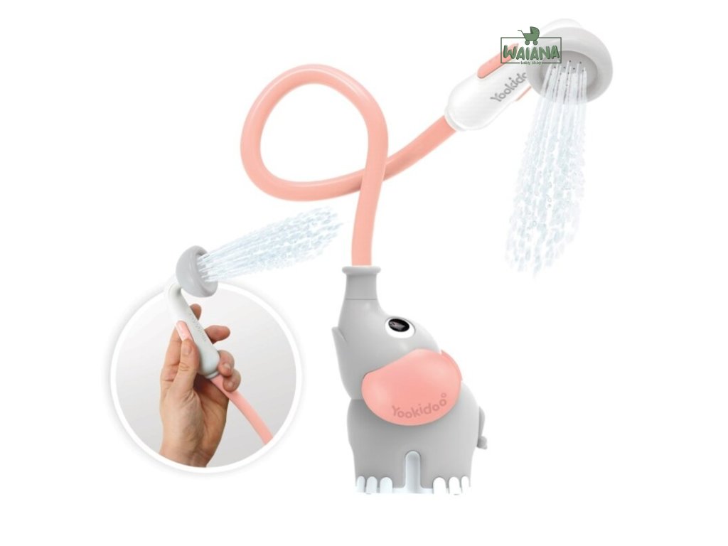 Umiestnite sprchovú základňu slona do vody a zaistite minimálnu hĺbku vody 10 cm. Pre aktiváciu prúdenia vody stlačte tlačidlá umiestnené na bočných stranách sprchovej hlavice. Priložte prúd vody na nohy dieťaťa. Keď je dieťa spokojné, použite sprchu aj na zvyšok tela. Akonáhle dieťa sedí samo, ukážte mu, ako má aktivovať detskú sprchu. Podporuje hygienické návyky, nezávislosť a zábavu.