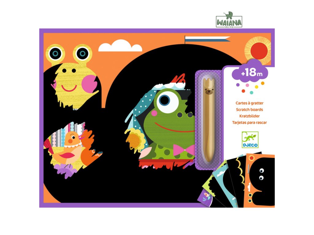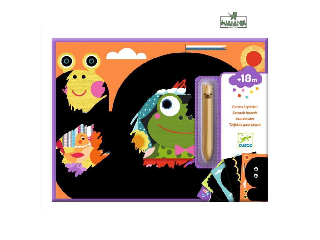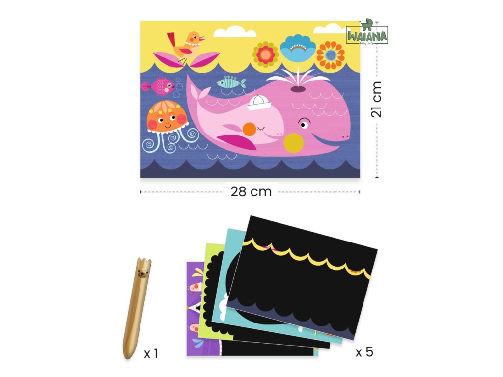 Zábavné objavovanie - Vyškrabovacie obrázky 5 ks Zábavná kreatívna sada pre batoľatá Rozvíjajte kreativitu a jemnú motoriku svojho batoľaťa s našou kreatívnou sadou na vyškrabovanie. Sada obsahuje 5 veľkých obrázkov, na ktorých sa pod čiernou vrstvou ukrývajú krásne a pestrofarebné ilustrácie veselých zvieratiek. Deti môžu pomocou drevenej škrabky s oblým hrotom odkrývať detaily obrázkov, čím si precvičujú jemnú motoriku a zlepšujú koordináciu ruka-oko. Na obrázkoch je dostatok miesta na škrabanie, takže batoľatá sa môžu vyhrať, odkryť celé zvieratko a objaviť farby, ktoré sa skrývajú pod čiernou vrstvou.Sada je skvelá na rozvoj predstavivosti detí, zároveň ide o ekologický produkt s FSC® certifikátom, ktorý je šetrný k životnému prostrediu. Balenie obsahuje 5 obrázkov na vyškrabovanie, jednu veľkú drevenú škrabku a obrázkový návod. Je ideálnym darčekom pre deti od 18 mesiacov, ktorý poskytne hodiny zábavy a tvorivého vyžitia.