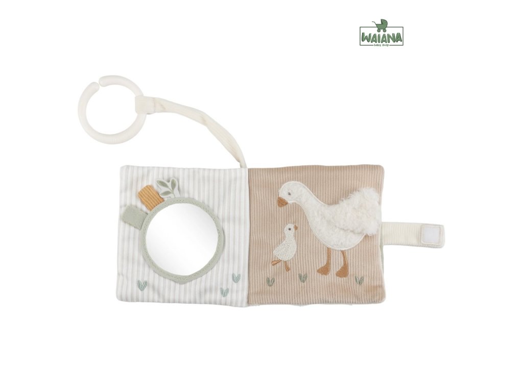 Mäkká textilná knižka s krásnymi motívmi zo života húsky a zajačika upúta pozornosť vášho dieťaťa množstvom aktivít, ukrytých na jednotlivých stránkach. Na skúmanie a prezeranie lákajú šuštiace aj pískacie stránky, rôznorodé textúry alebo napr. bezpečné zrkadlo. Knižka pomáha rozvíjať jednotlivé zmysly dieťaťa aj koordináciu ruka/oko.