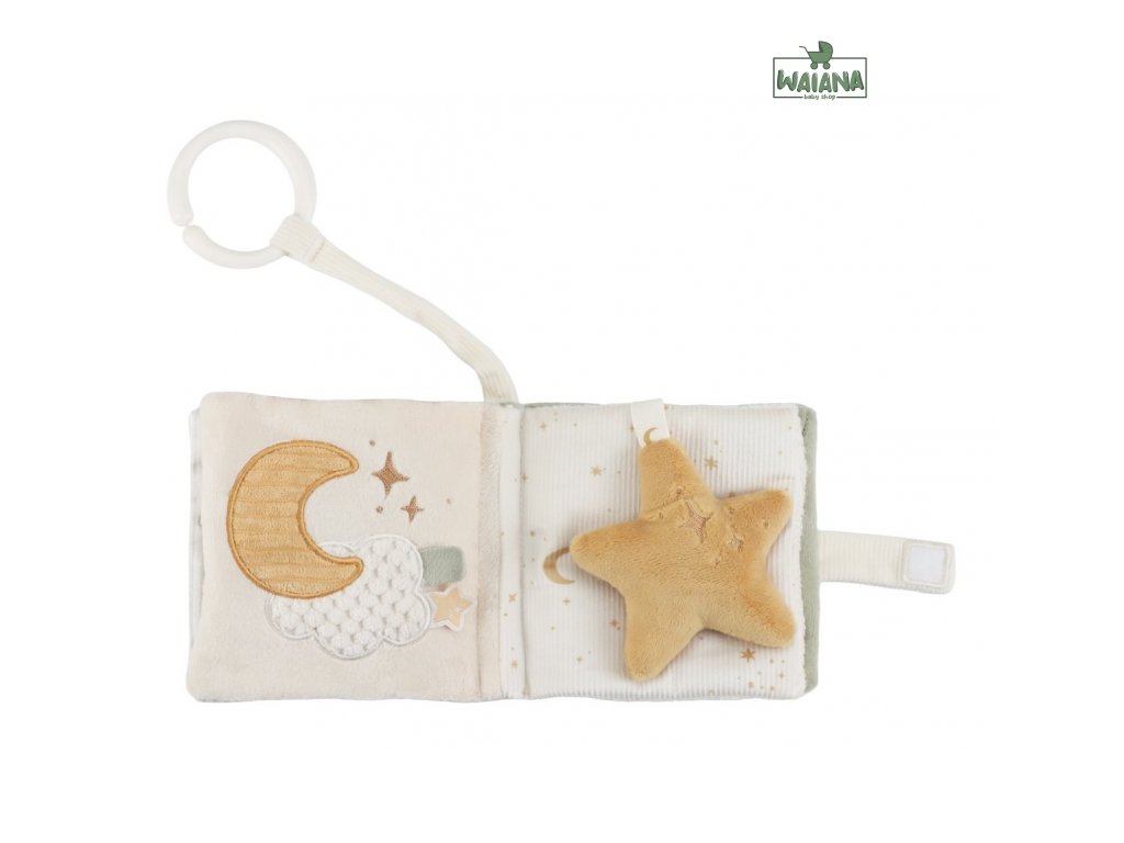 Knižku môžete ľahko zavesiť na kočík, autosedačku či postieľku.