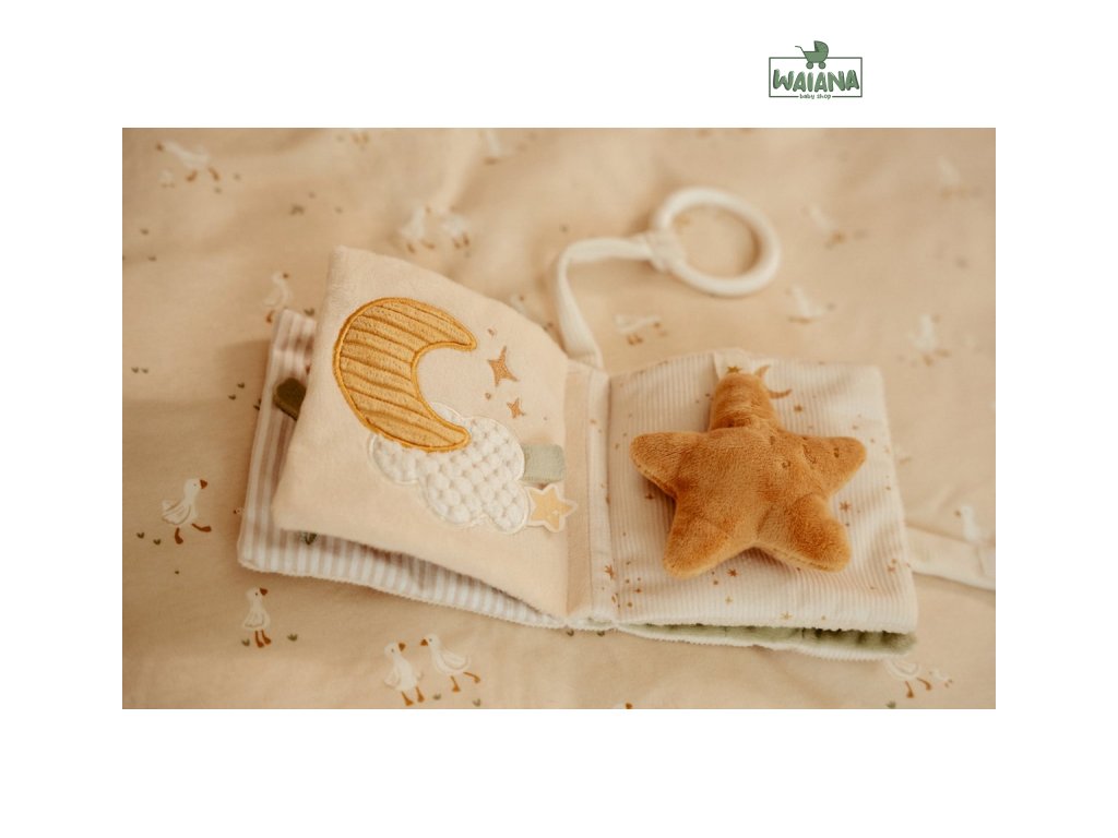 Knižka je súčasťou dizajnovej kolekcie hračiek Little Dutch Newborn Naturals.